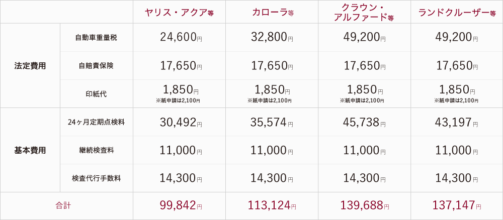 車型、年式、走行距離によって、車検費用は変わります。詳しくはお近くの店舗までお問い合わせください。