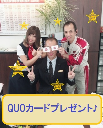 オリジナルQUOカードで盛り上がるスタッフ(^^♪