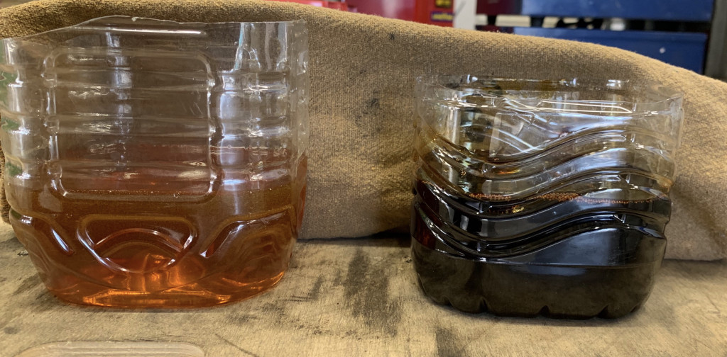 右が交換した車に入っていたオイルです。