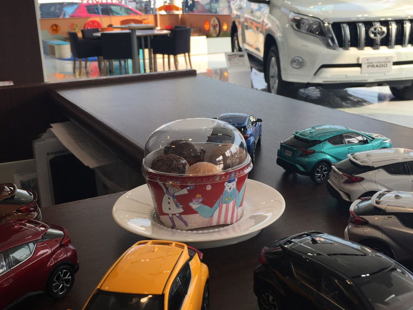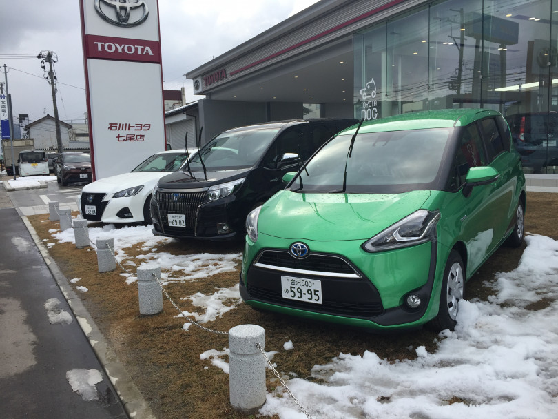 左からC-HR、ルーミーカスタム、…すみません!見切れてますが白はアリオンです!