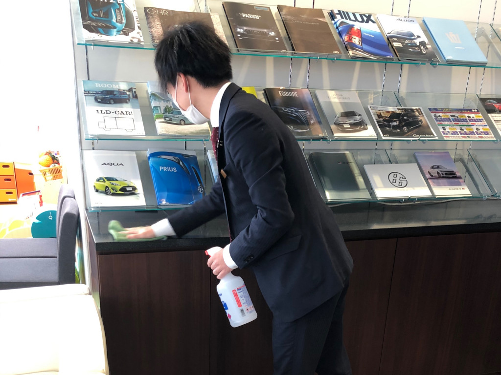 朝のお掃除もアルコールを使って隅々までふきふき(・へ・)