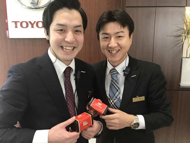 男性スタッフにチョコレートのプレゼントを渡しました♪