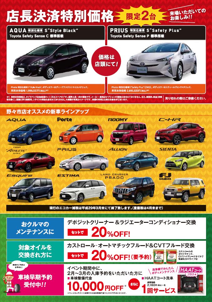 この2日間は、店長おすすめの特選車もご用意しております!