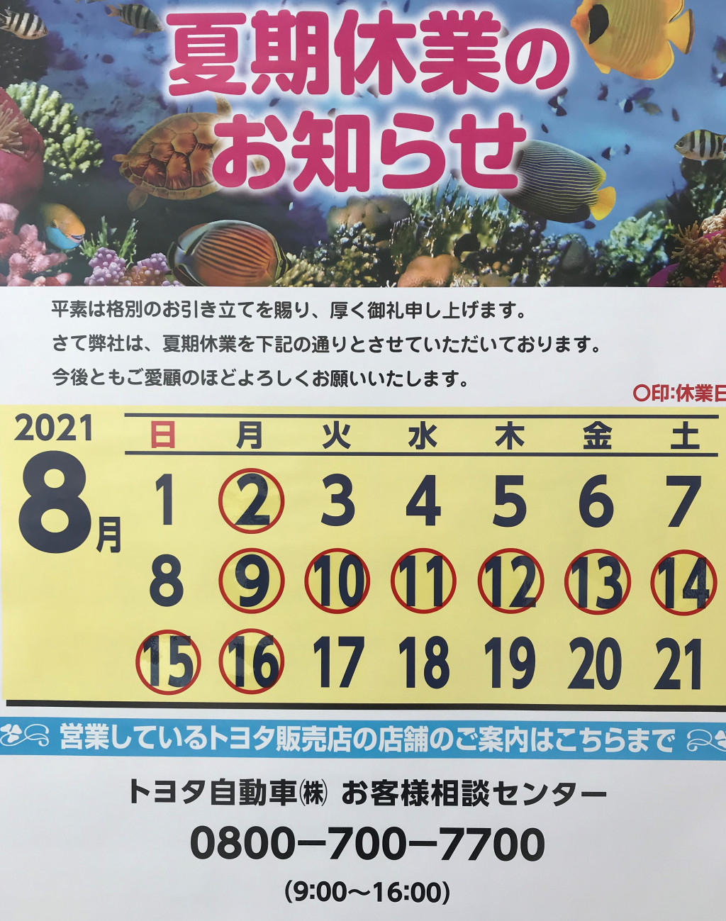 夏季休暇お知らせ