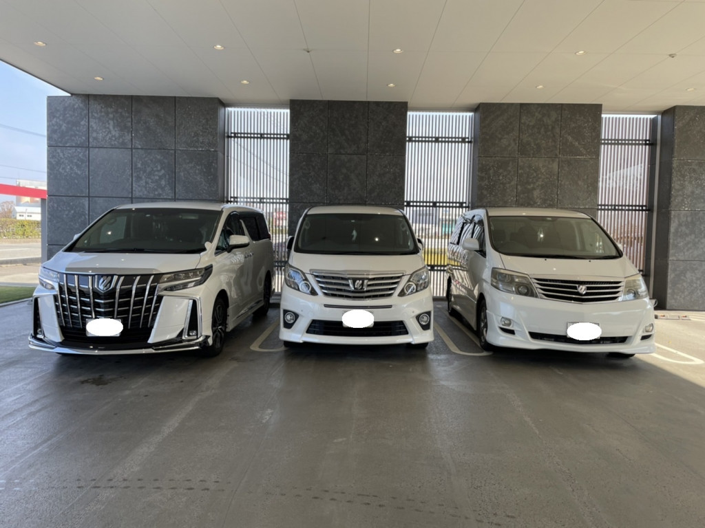 歴代のアルファードが店舗に並びましたので