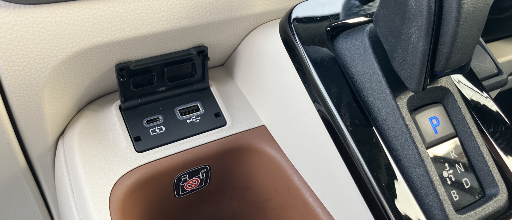 運転席シート裏に充電用USB(Type-C)を2個装備。