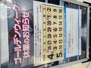ゴールデンウィーク休業日のおしらせです。