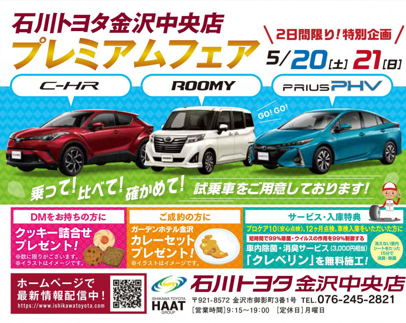 5/20(土)21(日)石川トヨタ金沢中央店プレミアムイベント開催中です♪
