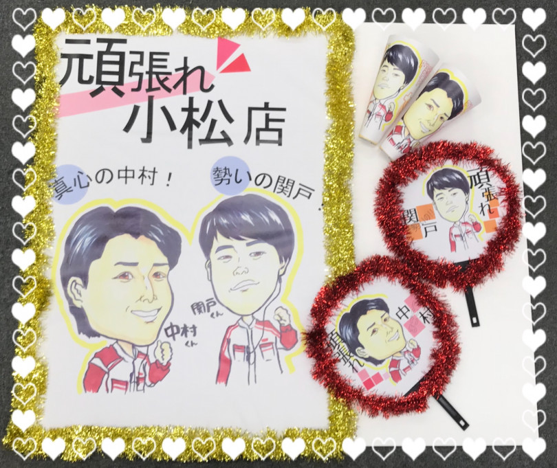 小松店スタッフも似顔絵の応援グッズで