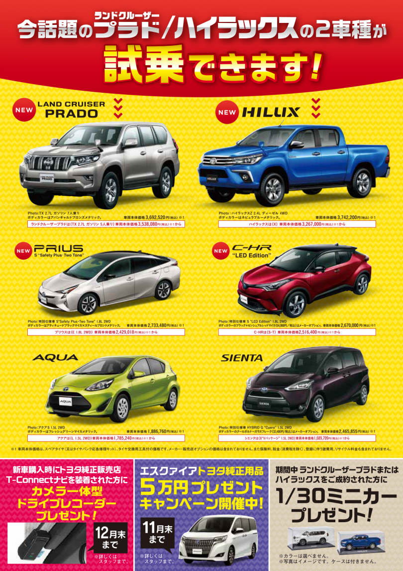 今週末は石川トヨタ野々市店へ!今年最後の超大決算イベント!話題のハイラックスやランドクルーザープラドもアレコレ・・・☆