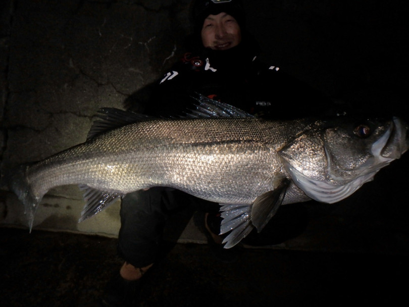 深夜の漁港で粘って1本!