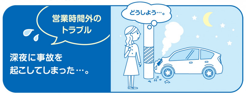営業時間外、定休日、長期連休中は、事故専用ダイヤルのスタッフが責任を持って対応。