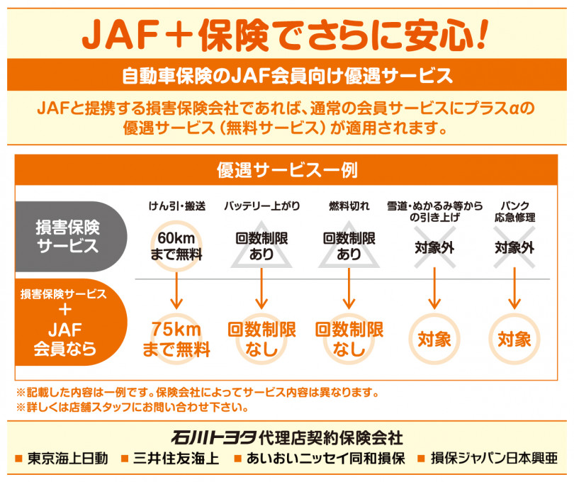 任意保険に付帯されているロードサービスがより優遇されますので、さらに安心です。
