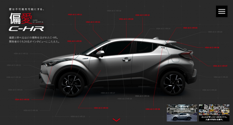 C-HRの開発に携わった技術者の方々が、熱く語っているサイトです。